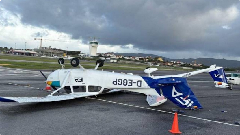 عاصفة قوية تتسبب في انقلاب 3 طائرات في مطار تايريس بالبرتغال