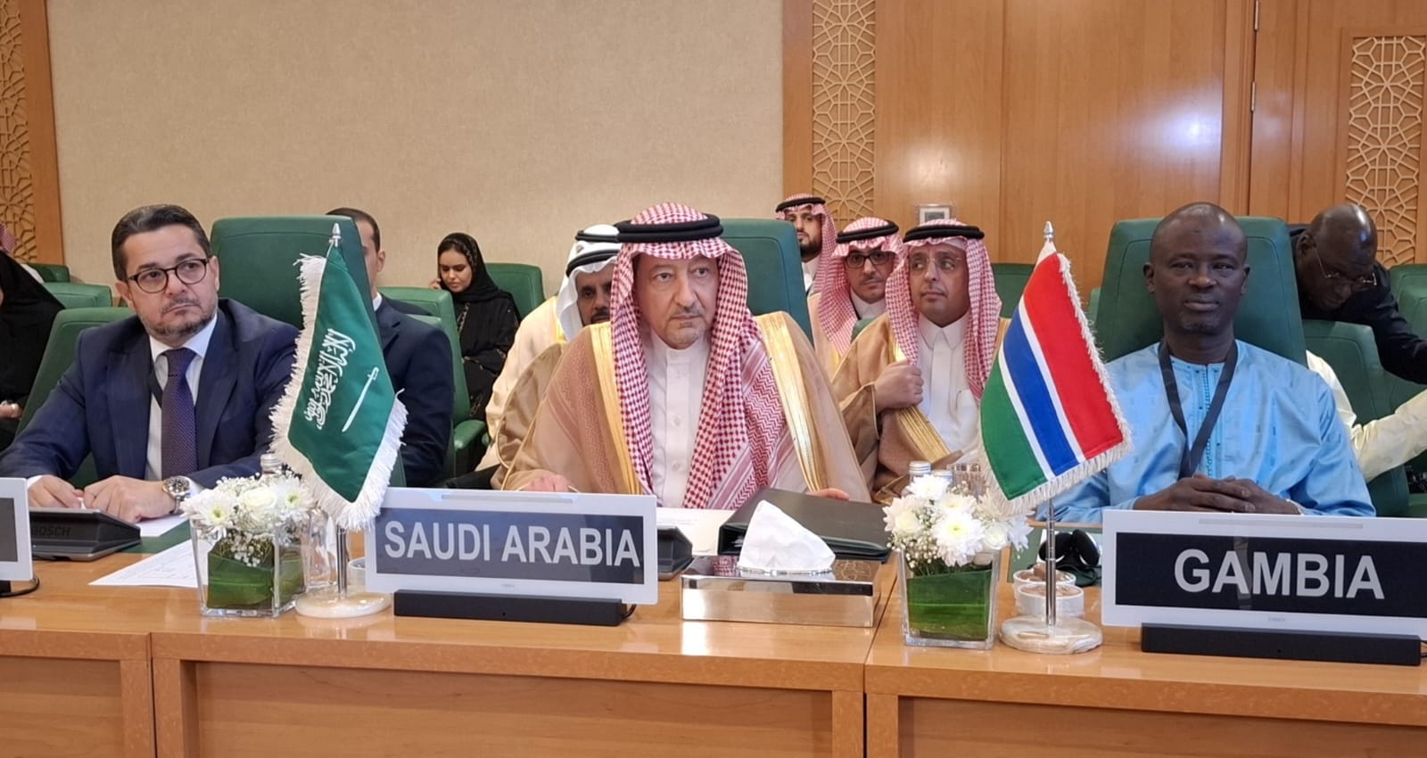 واسترشد الاجتماع بمبادئ ميثاق الأمم المتحدة وقراراتها التي تعارض الاستيلاء القسري على الأراضي، والطبيعة غير القانونية للاحتلال الإسرائيلي، فأكّد مجددًا التزامه الثابت ودعمه المستمر لحقوق الشعب الفلسطيني غير القابلة للتصرف، بما في ذلك حقه في تقرير المصير، وحق العودة، وإقامة دولة فلسطينية مستقلة وذات سيادة على حدود 4 يونيو 1967، وعاصمتها القدس الشرقية.