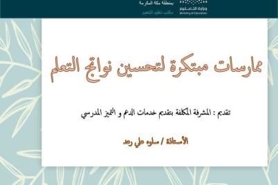 نفذت الإدارة العامة للتعليم بمنطقة مكة المكرمة ممثلة في إدارة تنمية القدرات -قسم الشؤون الصحية المدرسية - بالتعاون مع إدارة الموارد البشرية/ فريق التدريب بمكة ، و التجمع الصحي بمكة يومي الأربعاء والخميس الموافق25ـ26/ 5/1446هـ ، برنامجا تدريبيا بعنوان (الصحة النفسية وجودة الحياة) بمركز التدريب الثالث بالنوارية حضوريا، أعدته ونفذته مساعدة رئيس قسم الشؤون الصحية المدرسية رضية الخطابي، ومشرفة الشؤون الصحية المدرسية زاهيةالصيدلاني ،
