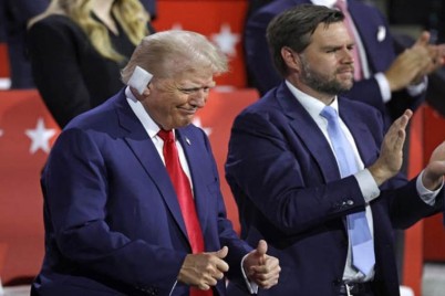 ظهر المرشح الجمهوري للرئاسة الأمريكية دونالد ترامب علنا للمرة الأولى في مؤتمر الحزب في ميلووكي بولاية ويسكونسن منذ محاولة...