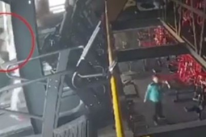 أظهرت لقطات مرعبة، اللحظة التي سقطت فيها فتاة كانت تستخدم جهاز المشي من نافذة مفتوحة لصالة ألعاب رياضية، في...