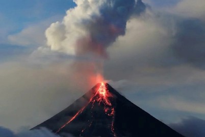 ثار بركان جبل إيبو في شرق إندونيسيا الأحد، نافثا الرماد في الجو على ارتفاع 3.5 كيلومترات فوق الفوهة، على...