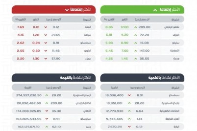 أغلق مؤشر الأسهم السعودية الرئيس، اليوم، مرتفعًا بمقدار 63.46 نقطة، ليقفل عند مستوى 11658.66 نقطة، وبتداولات بلغت قيمتها 4.9...