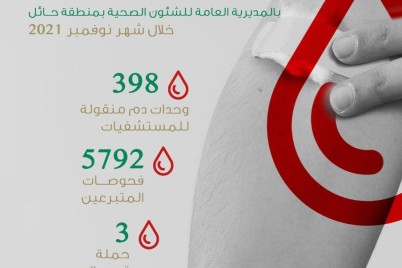 حائل - عبدالله الحايطي أجرى بنك الدم المركزي بصحة حائل خلال شهر نوفمبر من هذا العام 2021م، “5792” فحصاً مخبرياً...