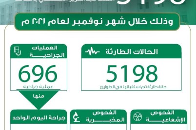 الطائف - هلال اليزيدي تعامل "طوارئ" مستشفى الملك عبدالعزيز التخصصي بالطائف ، خلال الشهر الماضي مع 5198 حالة طارئة...
