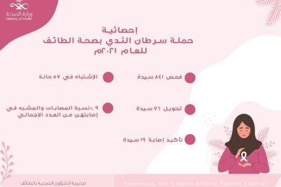 الطائف - هلال اليزيدي قادت حملات توعوية للكشف المبكر عن "سرطان الثدي "إلى تحويل 76 سيدة إلى المستشفيات للمزيد من...