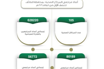 الطائف - هلال اليزيدي كشفت صحة الطائف، إن عدد المراجعين للمراكز الصحية التابعة لها بلغ 765181 مراجع، خلال النصف الأول...
