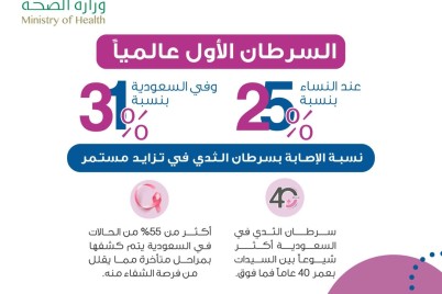 نفذت الصحة حملة توعوية بعنوان (رايتك وردية) للكشف المبكر عن سرطان الثدي الذي يُعد أكثر أنواع السرطان شيوعًا لدى...