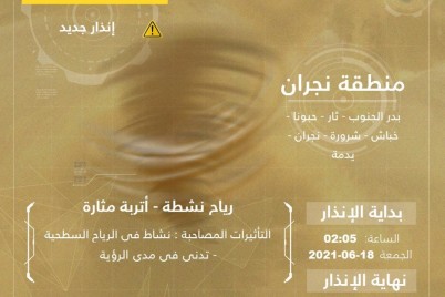 نجران- متابعات - أدهم اليامي نبه المركز الوطني للأرصاد اليوم من رياح سطحية نشطة مثيرة للأتربة والغبار، تؤدي إلى...