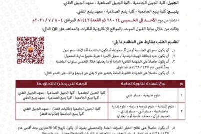 الجبيل الصناعية - متابعات أعلن قطاع التعليم بالهيئة الملكية للجبيل وينبع عن فتح باب القبول الموحد للفصل الدراسي الأول...