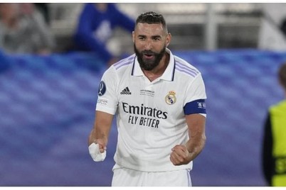 فاز الفرنسي كريم بنزيما، مهاجم نادي ريال مدريد الإسباني، بجائزة أفضل لاعب في أوروبا، خلال الحفل المقام في مدينة...