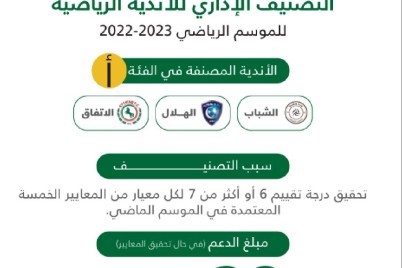 الرياض - سعد المصبح وفقًا لما أعلنته الوزارة في 8 نوفمبر 2021م، فقد تم تصنيف الأندية إلى (6) فئات، بناءً...