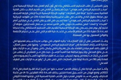 الرياض - سعد المصبح رفعت إدارة نادي الهلال خطاب استئناف الى مركز التحكيم الرياضي على قرار غرفة فض المنازعات...