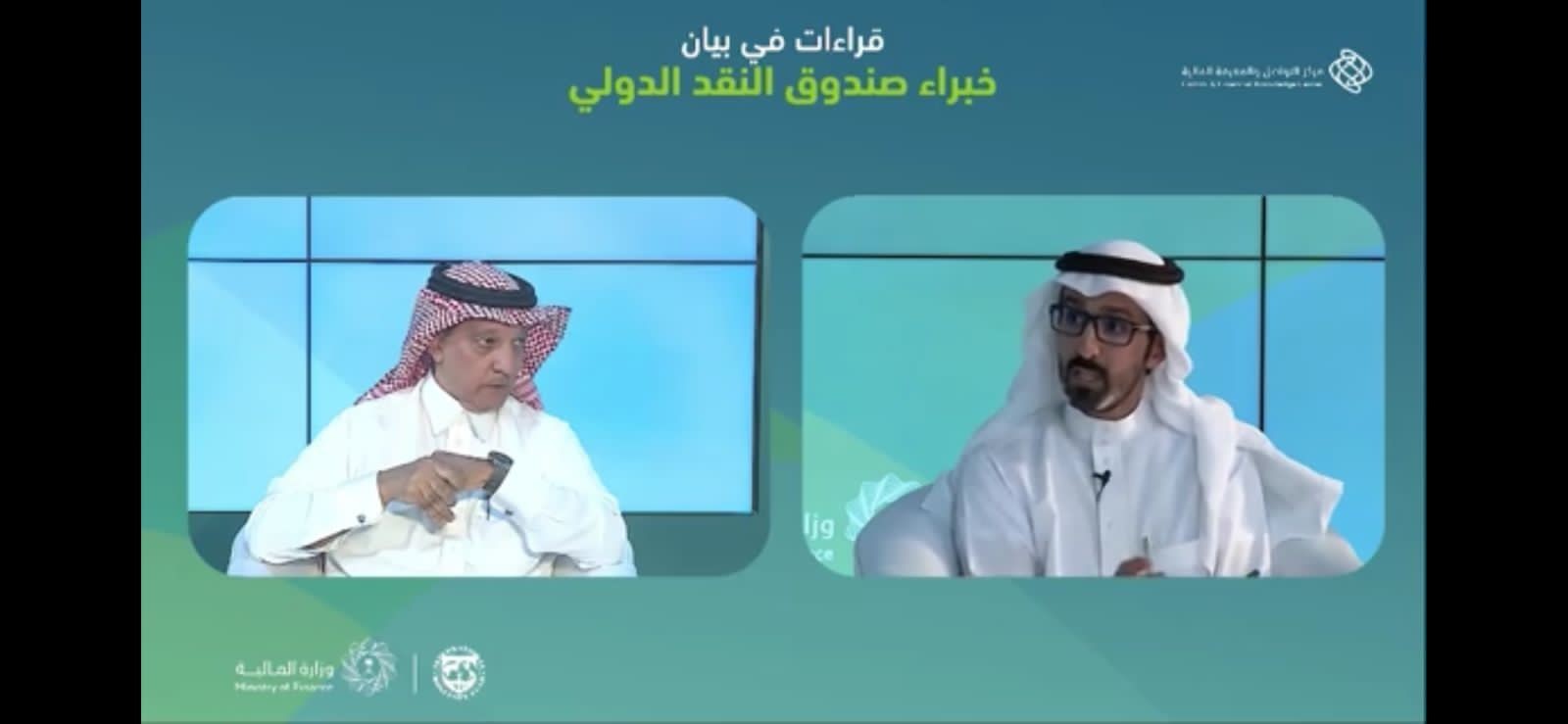 وشارك في اللقاء كل من، وكيل وزارة المالية المساعد لتطوير السياسات المالية الأستاذ عبدالوهاب البابطين، ووكيل وزارة المالية المساعد لتحليل سياسات الاقتصاد الكلي الدكتور عبدالإله الرشيدي، والخبير الاقتصادي في صندوق النقد الدولي قسم الشرق الأوسط وآسيا الوسطى الدكتورة سيدرا رحمان، والأكاديمي والمحلل الاقتصادي الدكتور محمد مكني، وأدار اللقاء الكاتب الاقتصادي والخبير المصرفي الأستاذ طلعت حافظ.