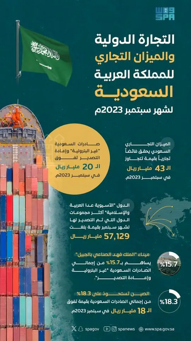 الميزان التجاري يحقق فائضًا تجاريًّا بقيمة تتجاوز الـ43 مليار ريال في سبتمبر الماضي