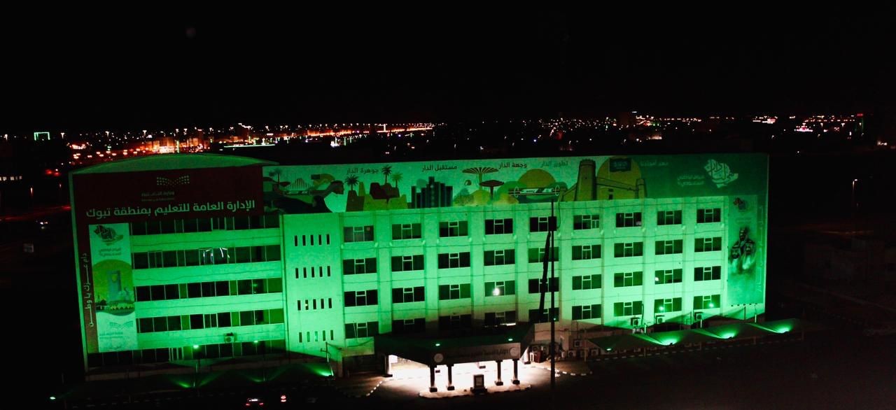 تحتفي الإدارة العامة للتعليم بمنطقة تبوك باليوم الوطني الــ 91 عبر مشاركة أكثر من 200 ألف طالب وطالبة بشعار " هي لنا دار " ويتم تنفذ فعاليات وبرامج الاحتفاء عن بُعد في مدارس المرحلة الابتدائية ورياض الأطفال، وحضوريًّا للمرحلتين المتوسطة والثانوية مع مراعاة الاحترازات الوقائية والإجراءات الصحية على مدى أسبوع دراسي كامل من الأحد المقبل الموافق 19/ 2 إلى الخميس الموافق 23/ 2/ 1443هـ.