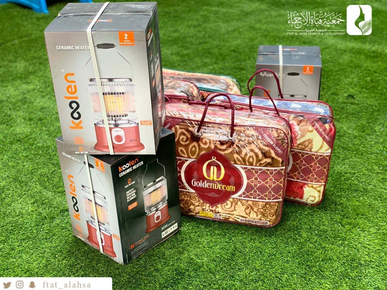 وبلغ عدد المستفيدين  900 أسرة، كما بلغ اجمالي التبرعات 70ألف  ريال وتضمنت الكسوة كوبونات مشتريات للكسوة الشتوية وأجهزة التدفئة.