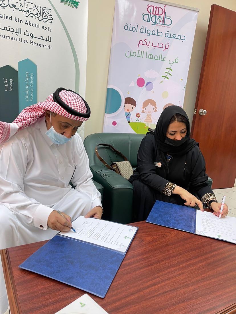 وقعت جمعية طفولة آمنة ومركز الأمير مشعل بن ماجد بن عبدالعزيز للبحوث الاجتماعية والإنسانية بجامعة الملك عبدالعزيز مذكرة تعاون تهدف إلى تعزيز التعاون بين الطرفين سعیاً للتكامل في الجھود بما یخدم المجتمع في المجالات الاجتماعیة المختلفة، سواء من حیث دراسات الظواھر والمشكلات المجتمعیة أو من خلال التدريب و التوعیة والاستشارات