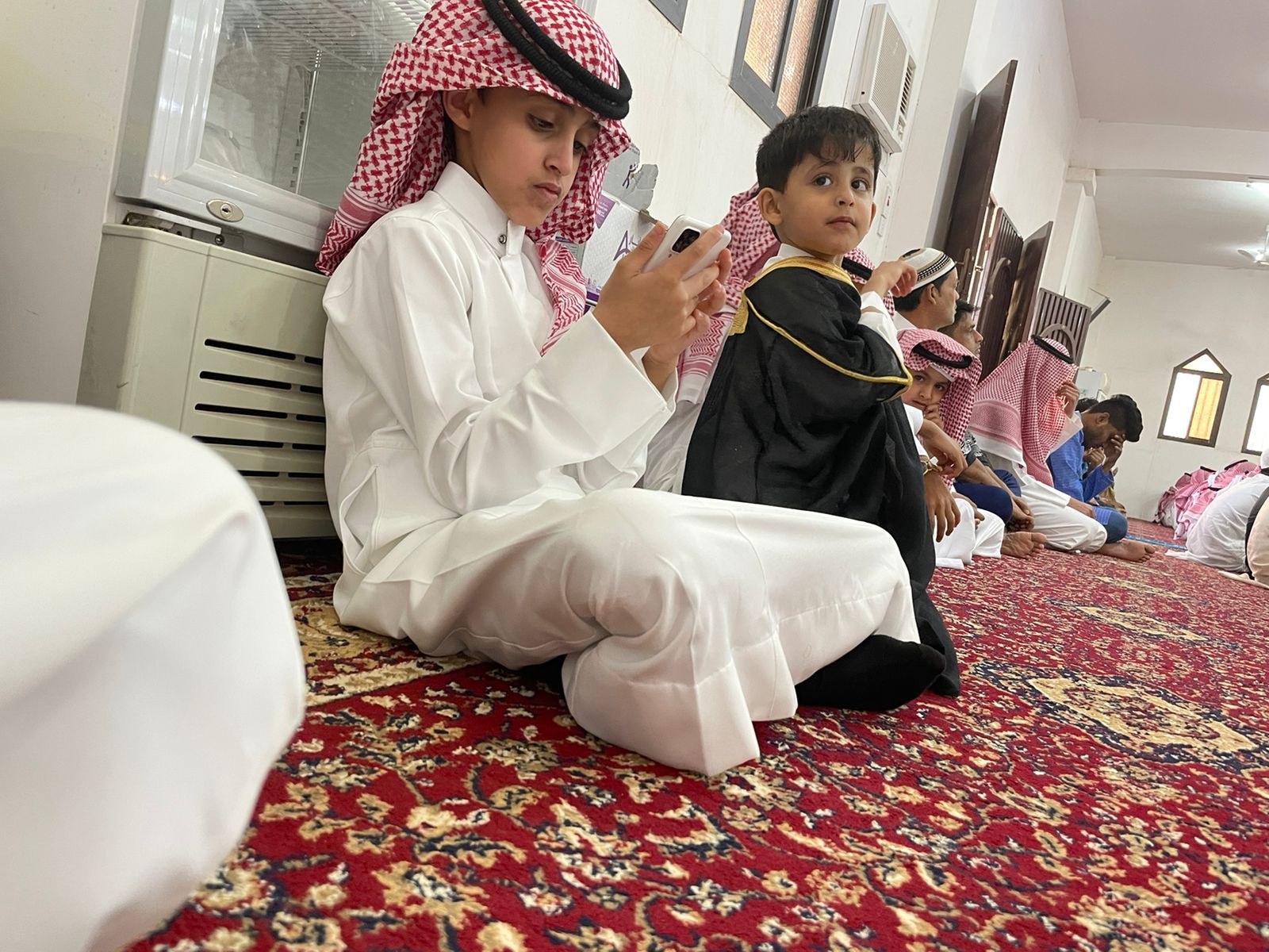 بهذا الجانب ، تحدث لنا العم حمد الشمري ، إنه من بعد أن تقام صلاة العيد في جامعنا القرية نقوم بأخذ بالسلام على أهالي قريتنا لكبار السن والصغار وزيارة الأقارب ، وبعد ذلك نقوم بالتجمع عند أحد بيوت القرية مشيرًا بأننا في كل عيد تكون وجبة الإفطار عند أحدنا.