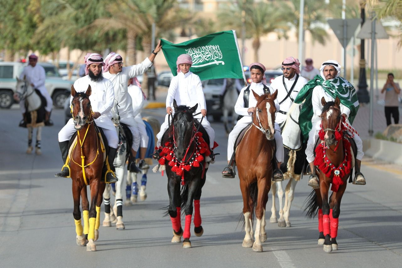مسيرة الخيول العربية ضمن فعاليات "العيد الشمالي" بالحدود الشمالية