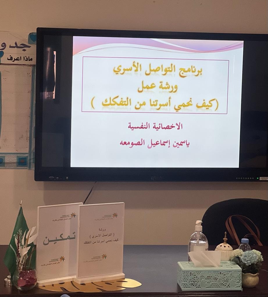 نفذ مكتب الضمان الاجتماعي بالقريات بمقر المدرسه المتوسطه الرابعه للبنات ورشة بعنوان { التواصل الاسري) كيف نحمي اسرتنا من التفكك } قدمتها الاخصائية النفسية / ياسمين اسماعيل الصومعه وتناولت الورشة عددمن الجوانب ،التواصل الاسري السليم والحد من المشكلات الاسريه وتقوية علاقة افراد الاسره وكيفية حل المشكلات الاسرية بشكل صحيح ومناقشة بعض المشكلات مع الحضور وطرق حلها بشكل صحيح كما اشتملت الورشة على عرض مرئي .