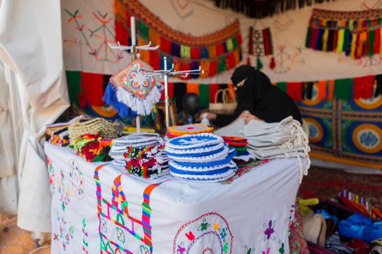 وتصدرت مبيعات النسيج والتطريز بالمهرجان دخلاً يتراوح ما بين 300 إلى 500 ريال كمبيعاتٍ يومية للفرد ويصب في رفع سقف إنتاجية الأسر، بتطريز بديع يحاكي إبداعهن بالخيوط الملونة.
