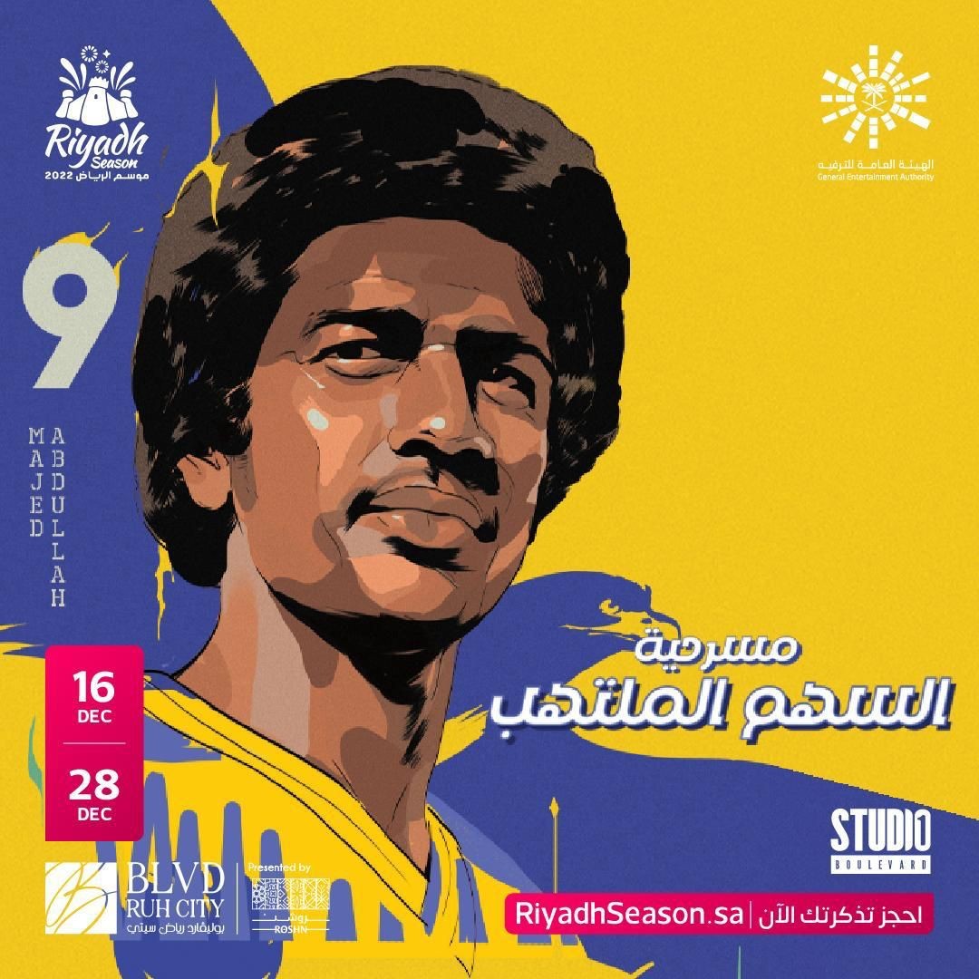 المملكة العربية السعودية، 9 ديسمبر 2022: ضمن سلسلة المسرحيات التي ينظمها موسم الرياض 2022، تشهد منطقة بوليفارد رياض سيتي" مسرحية يسطع من خلالها مجددا نجم ماجد عبدالله، النجم السابق للمنتخب الوطني ونادي النصر، اللاعب السعودي الذي يحظى بجماهيرية كبيرة داخل المملكة وخارجها.