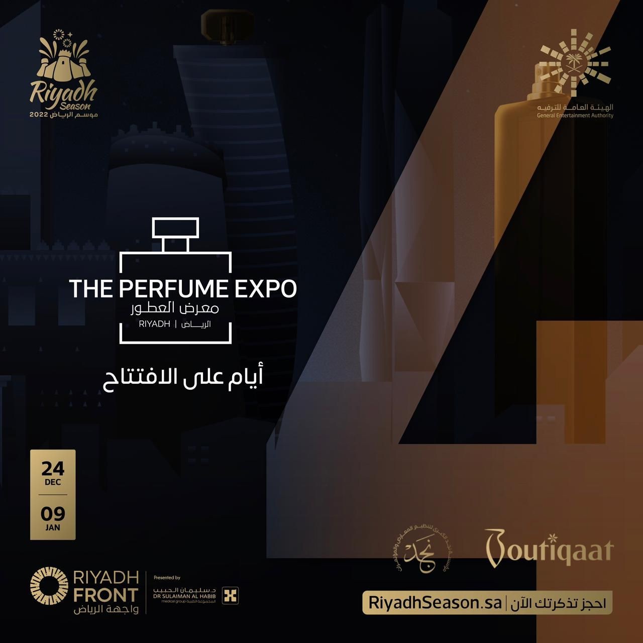 وتشارك في المعرض الذي يأتي ضمن فعاليات موسم الرياض 2022، بالتعاون مع "بوتيكات" الشركة الرائدة في عالم التجارة الرقمية، أكثر من 150 علامة تجارية، تمنح الزوار تجربةً فريدةً في التسوق، حيث يضم علامات تجارية متنوعة، من خلال أجنحة خاصة تعرض أرقى أنواع العطور العربية والعالمية.