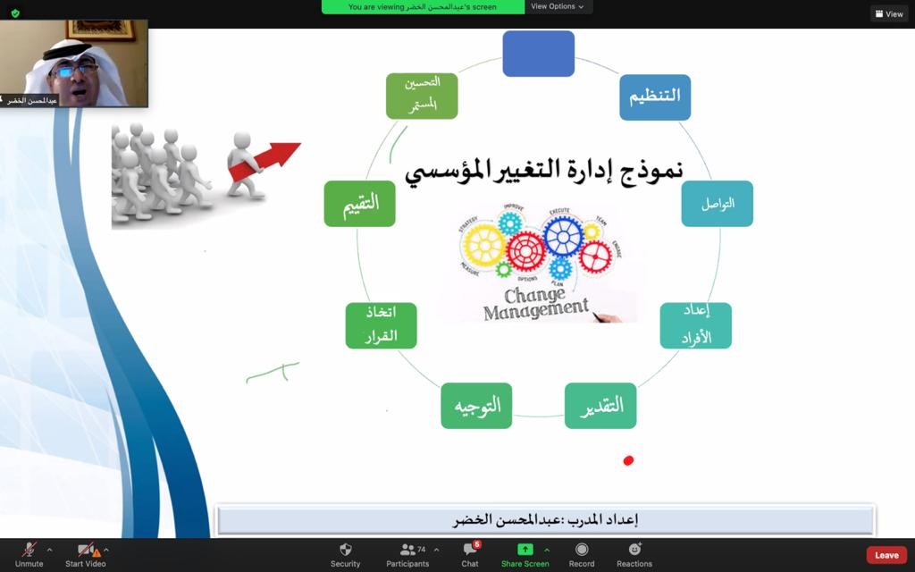 نفذ مركز التأهيل الشامل للإناث بالدمام متمثلاً بوحدة التدريب والتطوير والأداء الوظيفي ورشة عمل بعنوان (فن إدارة التغيير)، قدمها المدرب "عبد المحسن الخضر"، وذلك مساء الأربعاء الماضي، من خلال البث الإلكتروني عبر منصة Zoom، وتحت إشراف مديرة المركز عائشة المزيد.