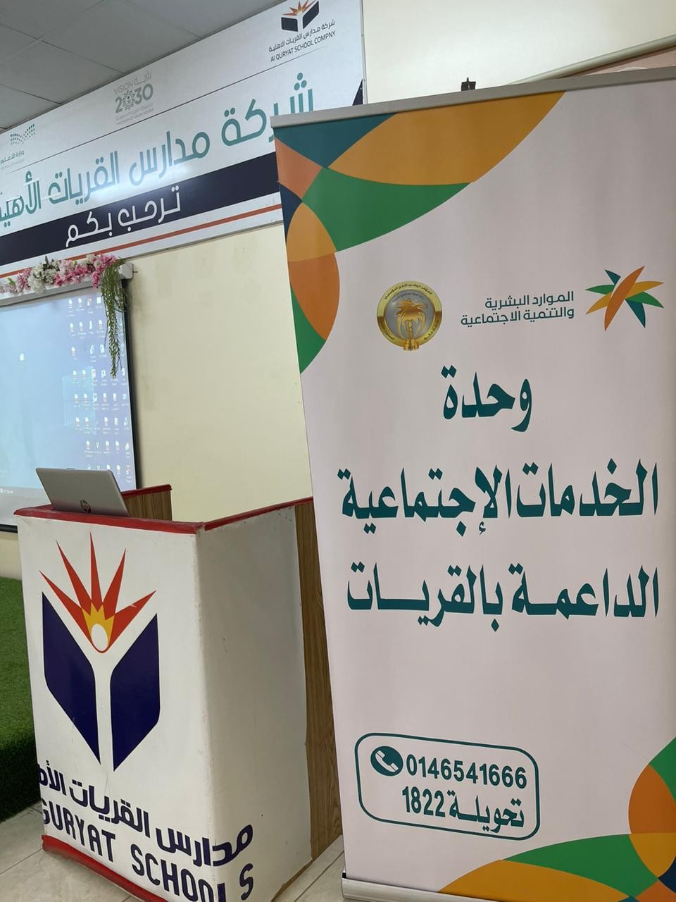 اقامت وحدة الخدمات الاجتماعية الداعمة بمحافظة القريات ورشة عمل بعنوان (غرس ثقافة التطوع لدى المجتمع) للتعريف  ودعم ثقافة العمل التطوعي ،نفذتها مساعدة مدير عمليات الموارد البشرية بادارة التعليم بالقريات الاستاذة/ نسرين مبارك الشراري.حيث نفذت الورشة بمدارس القريات الاهلية استهدفت الكادر الاداري وطالبات المرحلتين المتوسطة والثانوية .
