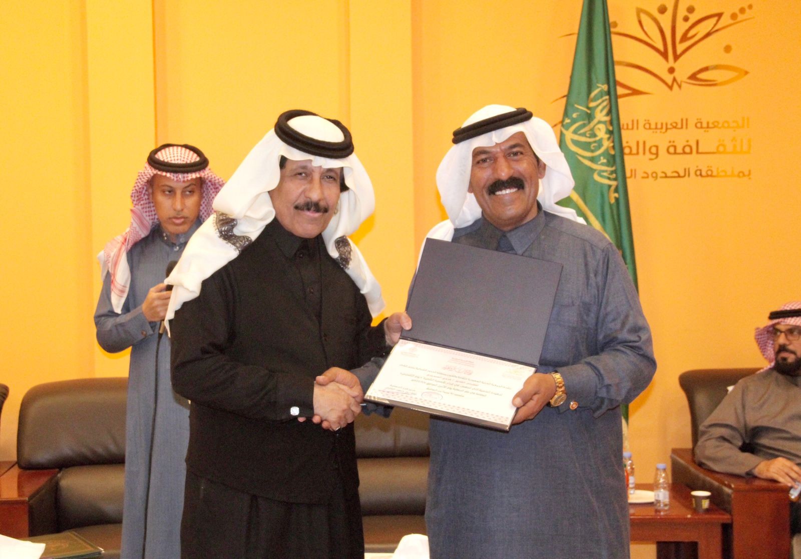 نظمت جمعية الثقافة والفنون بمنطقة الحدود الشمالية، بالتعاون مع مقهى أرجوحة شرقية الأدبي، أمسية شعرية خاصة بـ"يوم التأسيس"، أحياها الشاعر مروي السديري مشرف لجنة الموروث الشعبي بالجمعية وأدارها الدكتور فايز فريح الهويدي، وسط حضور عدد من المثقفين والمثقفات، وذلك بقاعة المركز الثقافي بالجمعية.