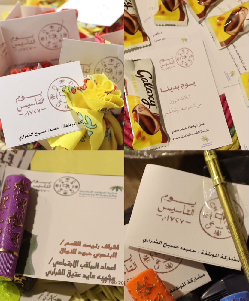 وأشتمل الحفل على ركن للتراث الشعبي والاكلات الشعبيه ( من يوم بدينا ) وطرق الطهي التقليدية وتقديم عدد من التوزيعات عن يوم التأسيس السعودي واستهدف ذلك منسوبي مكتب الضمان الاجتماعي بطبرجل وبعض المستفيدين المتواجدين بالمكتب.