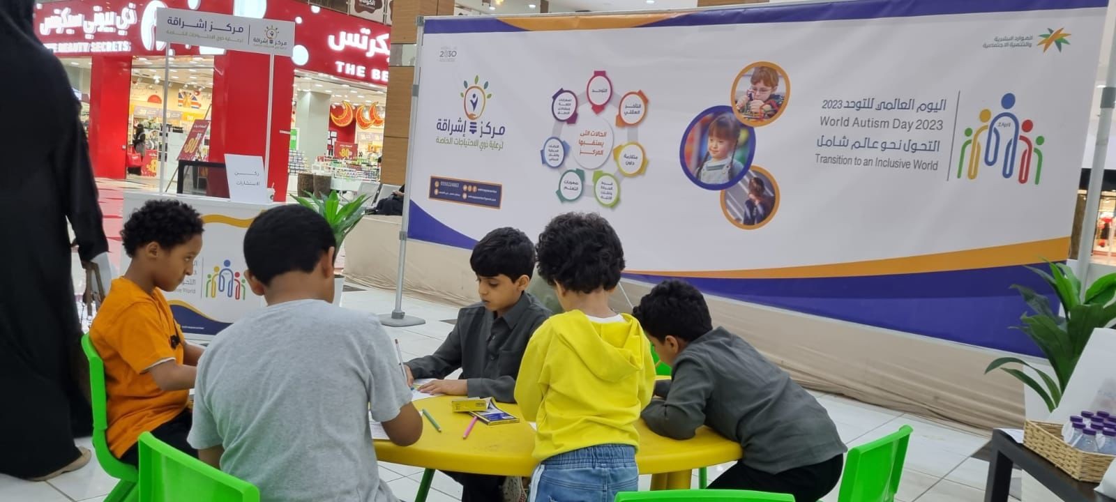 احتفى مركز إشراقة لرعاية ذوي الاحتياجات الخاصة بمحايل عسير  مساء الاحد باليوم العالمي للتوحد2023 تحت شعار " التحول نحو عالم شامل " بحضور  أسر اطفال التوحد وعدد من المهتمين  وذلك بالبساتين مول.