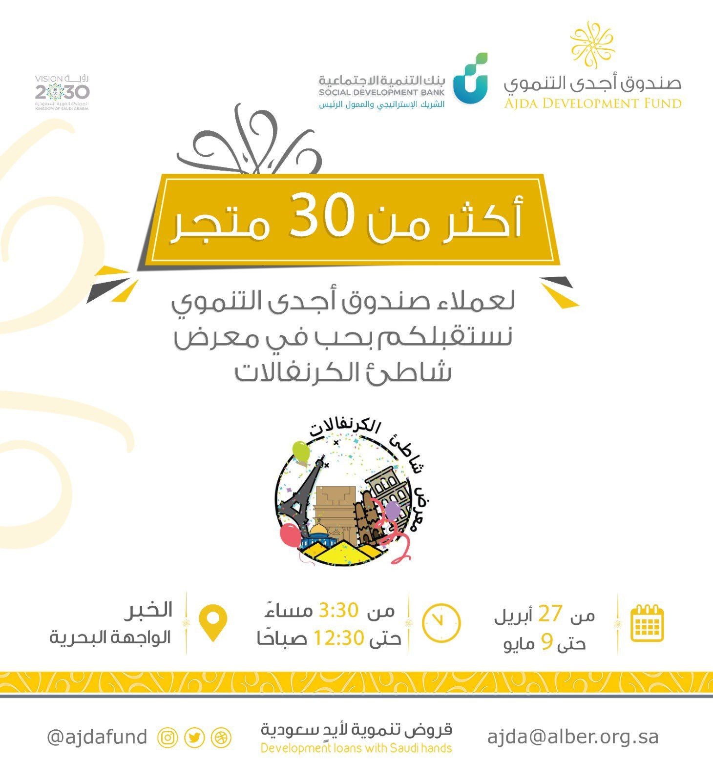 شاركت 30 أسرة منتجة من أسر فرع جمعية البر بالمنطقة الشرقية صندوق أجدى التنموي في فعاليات معرض شاطئ الكرنفالات الذي انطلق مساء أمس الخميس بالوجهة البحرية بمدينة الخبر ويتضمن فعاليات تراثية وخليجية ومبادرات خيرية وقال المتحدث الإعلامي لجمعية البر بالمنطقة الشرقية مساعد الأمين للاتصال المؤسسي فيصل المسند أن الجمعية تشارك في معرض شاطئ الكرنفالات لتعزيز التواصل والشراكة مع كافة الجهات الحكومية والخاصة وغير الربحية والتعريف ببرامج ومشاريع الجمعية والأثر الذي حققته الجمعية بالمجتمع وسعيا لتوفير منافذ بيع لأسر الجمعية المنتجة وعملاء فرع الجمعية صندوق أجدى التنموي حيث وصل عدد الأسر المنتجة بالمعرض ل30 أسرة منتجة تستعرض خلال مشاركتها التراث الوطني والخليجي للزائرين وأضاف المسند أن الجمعية تدعم هذه الأسر بالقروض الصغيرة والمتوسطة من خلال فرع الجمعية صندوق أجدى التنموي الذي يقدم لهذه الأسر قروضا حسنة صغيرة ومتوسطة بدعم وشراكة مع بنك التنمية المجتمعية مشيرا إلى أن عدد العملاء المقترضين حتى عام 2022 بلغ 2443 مقترض ومقترضة وبلغت القيمة المالية لهذه القروض 29.439.077 ريالا بنسبة سداد وصلت ل99.6% كما يسهم الصندوق حاليا في تدريب وتأهيل الأسر على المنتجات القماشية عبر حاضنة بأيدينا التي تستهدف تدريب 300 متدربة على الخياطة والتفصيل