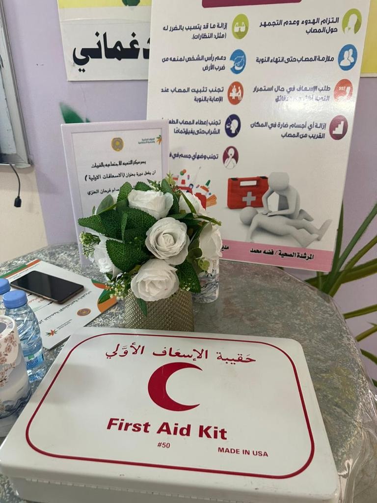 فعل مركز التنميه الاجتماعية بمحافظة القريات اليوم العالمي للإسعافات الأولية في المتوسطة السادسة بالقريات ضمن برامج وأنشطة المجتمع المحلي قدمتها الممرضة مرام فرحان العنزي من مركز صحي المطار تطرقت فيها إلى أنواع الجروح منها الخفيفة والبسيطة والجروح الخطيرة والطريقة الصحيحة لإيقاف النزيف وعن الكدمات والخدوش ونزف الأنف وإصابة العين والرقبة والظهر وطرق علاجهما وعن كيفية إنقاذ المريض الذي أصيب بصعوبة التنفس وفقدان الوعي وشرح مبسط لكيفية الإنعاش الرئوي SpR .