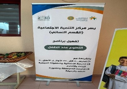 أقام القسم النسائي بمركز التنمية الاجتماعية بمحافظة دومة الجندل ممثلا بوحدة البرامج والمشاريع برنامج التطوع عند الطفل وذلك تحقيقاً لأهم أهداف رؤية المملكة  2030 م بالتعاون مع كلا من :- مدرسة فتيات الأوائل الاهلية بدومة الجندل يوم الاثنين الموافق 17/3/1445هـ