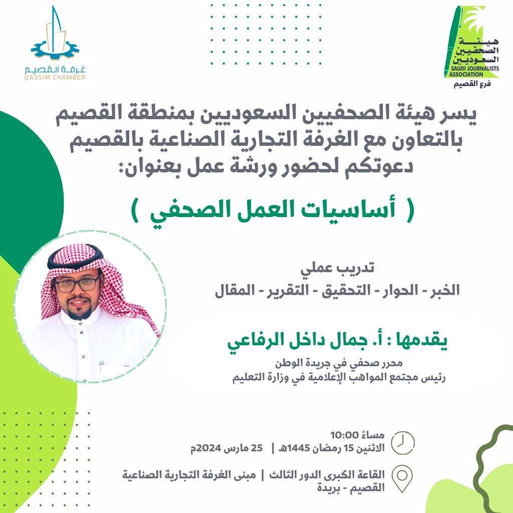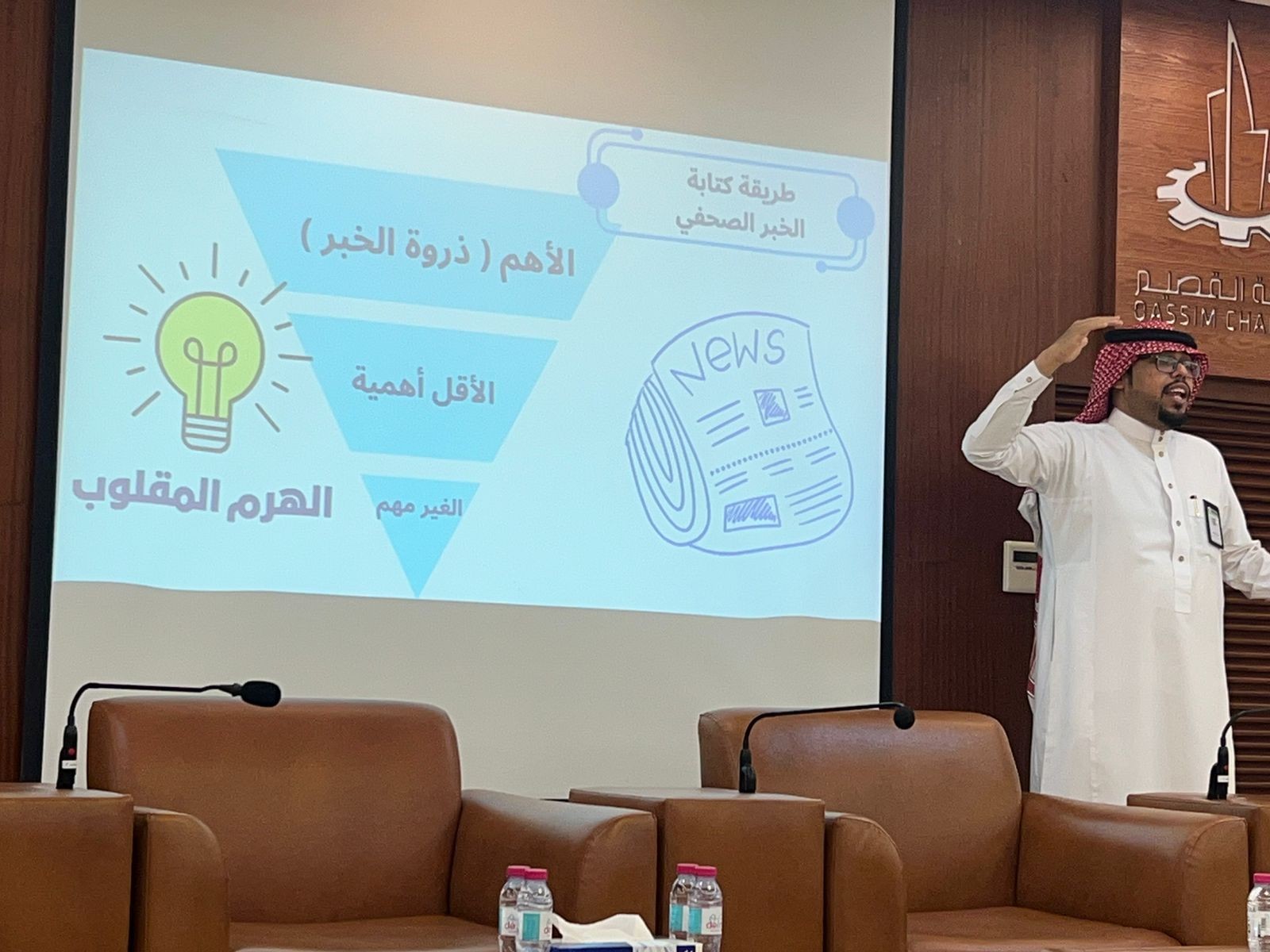 أقامت هيئة الصحفيين مساء اليوم الإثنين في مقر الغرفة التجارية بالقصيم(دورة أساسيات العمل الصحفي)للمدرب جمال الرفاعي،وقد أقيمت الدورة ليوم واحد بمعدل ساعتين .