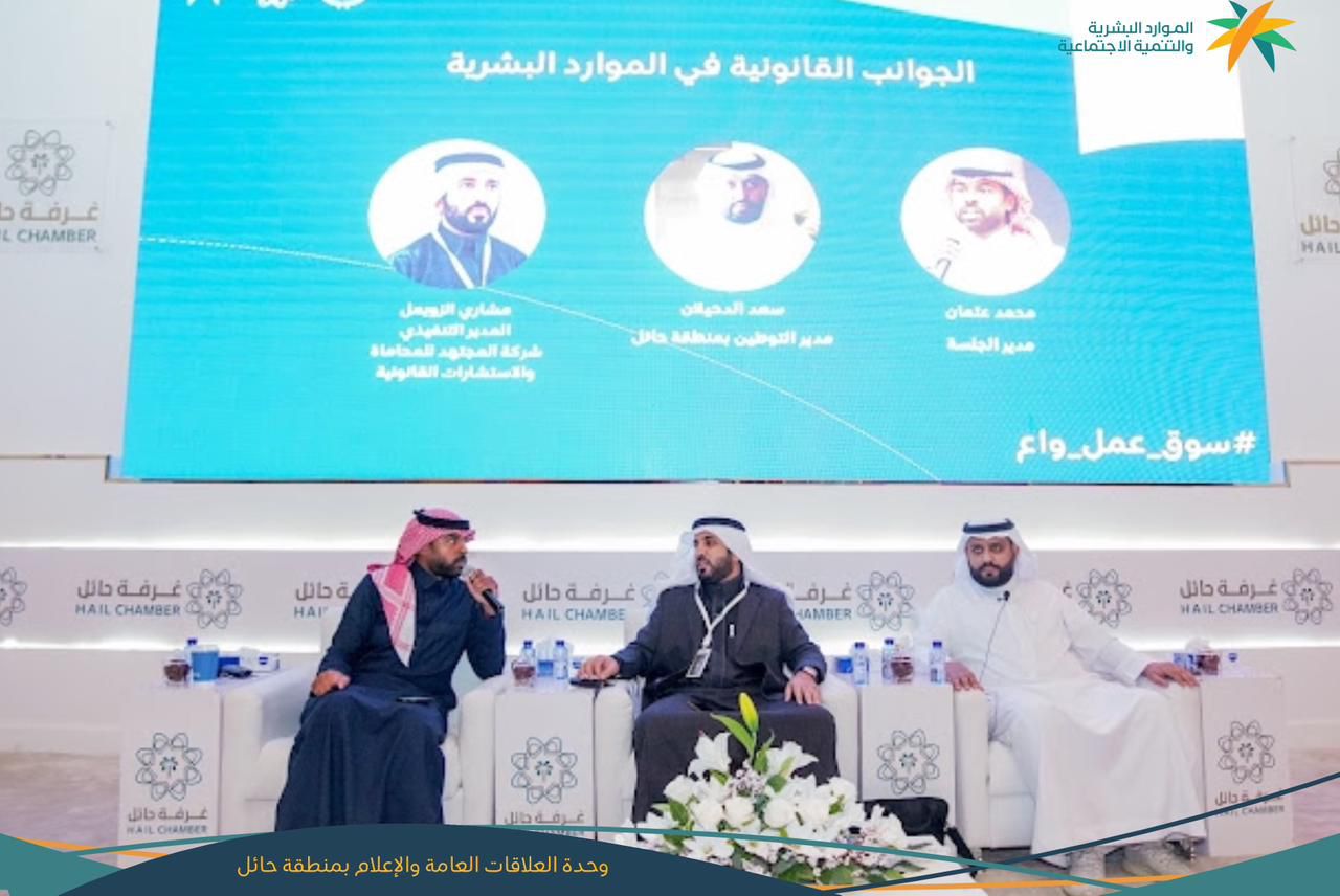 في إطار مبادرة “سوق عمل واعِ”، نظّم فرع وزارة الموارد البشرية والتنمية الاجتماعية بمنطقة حائل بالتعاون مع غرفة حائل اللقاء الثالث تحت عنوان “الجوانب القانونية في الموارد البشرية”. استهدف اللقاء أصحاب المنشآت، ومدراء ومنسوبي الموارد البشرية، والعاملين في القطاع الخاص، بهدف رفع مستوى الوعي القانوني وتعزيز الفهم الصحيح للأنظمة واللوائح المتعلقة بالموارد البشرية.