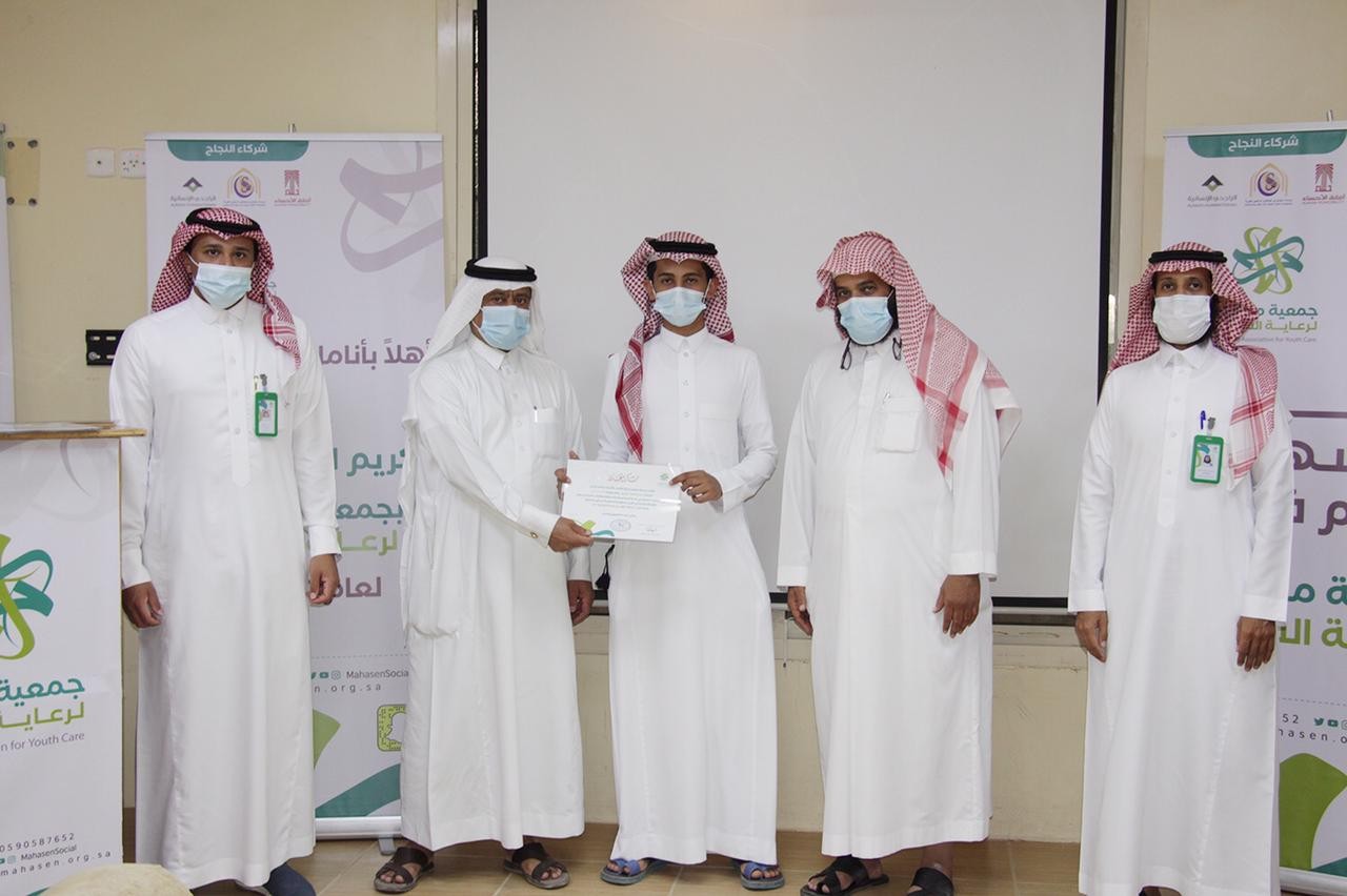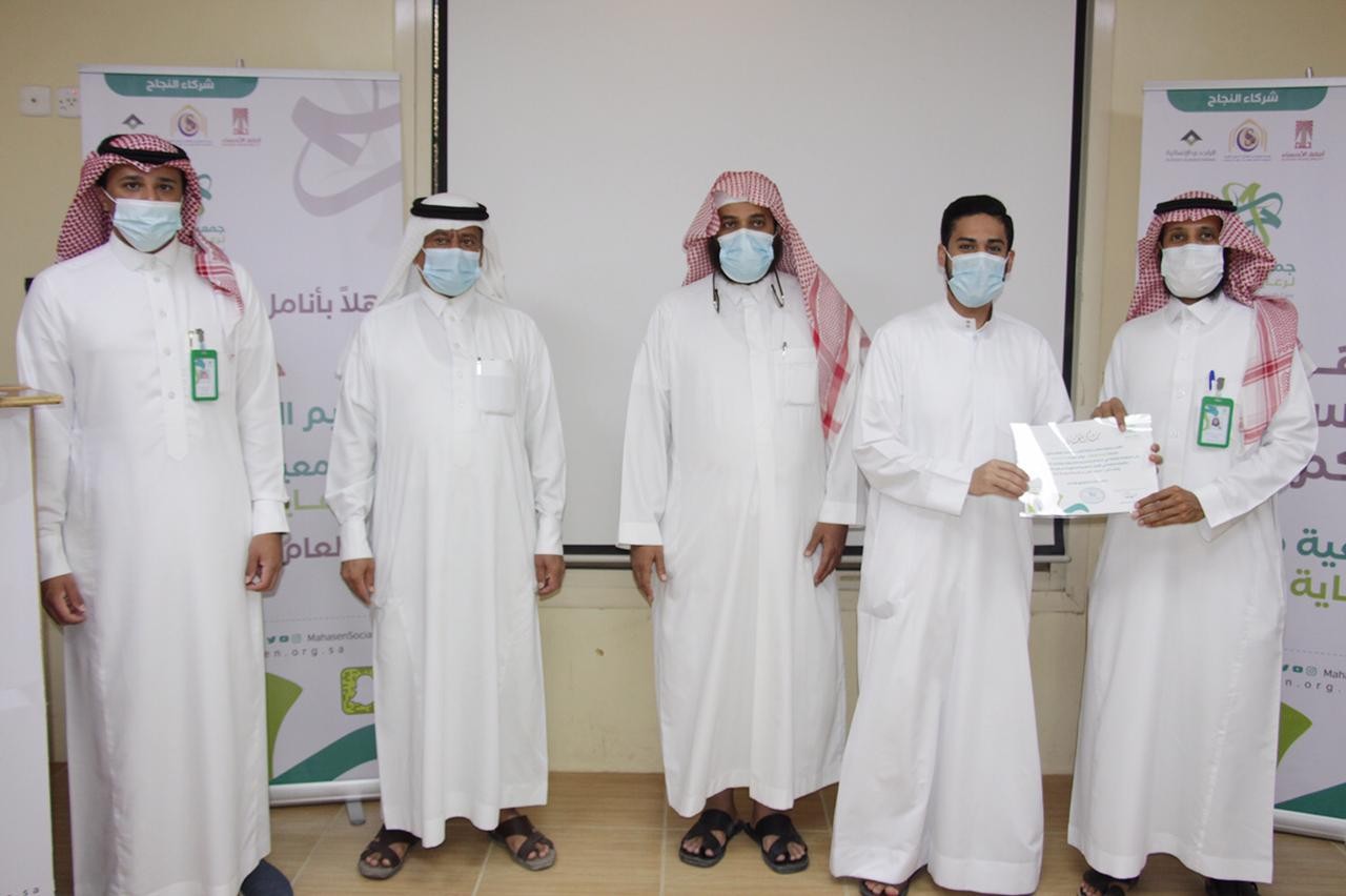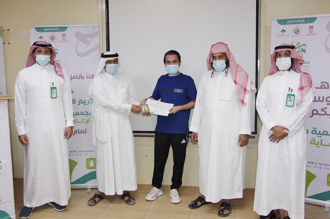 كرم رئيس مجلس إدارة جمعية محاسن لرعاية الشباب محمد المقهوي وعدد من أعضاء مجلس الإدارة والمدير التنفيذي للجمعية عبد الله الربيعة، المتطوعين المشاركين في برامج وأنشطة الجمعية خلال النصف الأول من عام 2021 م، في حفل أقيم في مقر الجمعية.