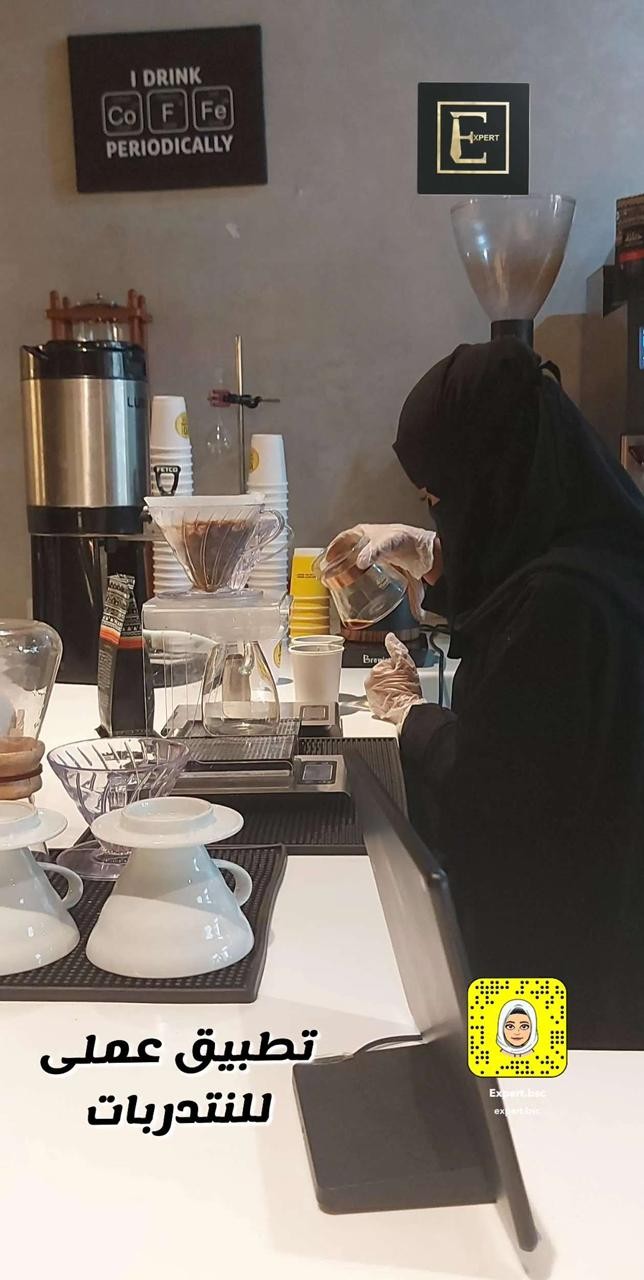 وقد كان التدريب لمده اسبوع وشمل البرنامج التدريب النظري فى البداية لمده يوم لمعرفه انواع القهوة واسماء القهوة المتنوعه ومقادير خلطها وقدمتها المدربة فاطمة علوان المشرفه على برنامج التدريب ٠