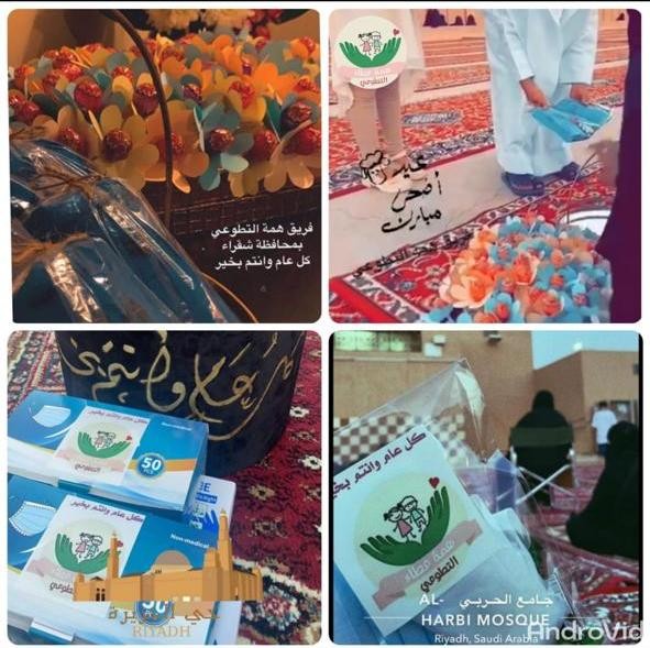 أطلق صباح أول أيام عيد الأضحى المبارك فريق النجاح الذي يعمل تحت مظلة جمعية نجاح الأسرة بالتعاون مع فريق همة عطاء التطوعي مبادرة "عيديات العيد" حيث تم تجهيز وتوزيع عيديات عيد الأضحى المبارك للعام ١٤٤٢هـ وهي عبارة عن ( كمامات ، قفازات ، مناديل معقمة ، حلويات للعيد ) مع التأكيد والحرص على إتخاذ الإجراءات والإحترازات للوقائية من جائحة كورونا ، وتم التوزيع في عدد ثمانية جوامع وهي :