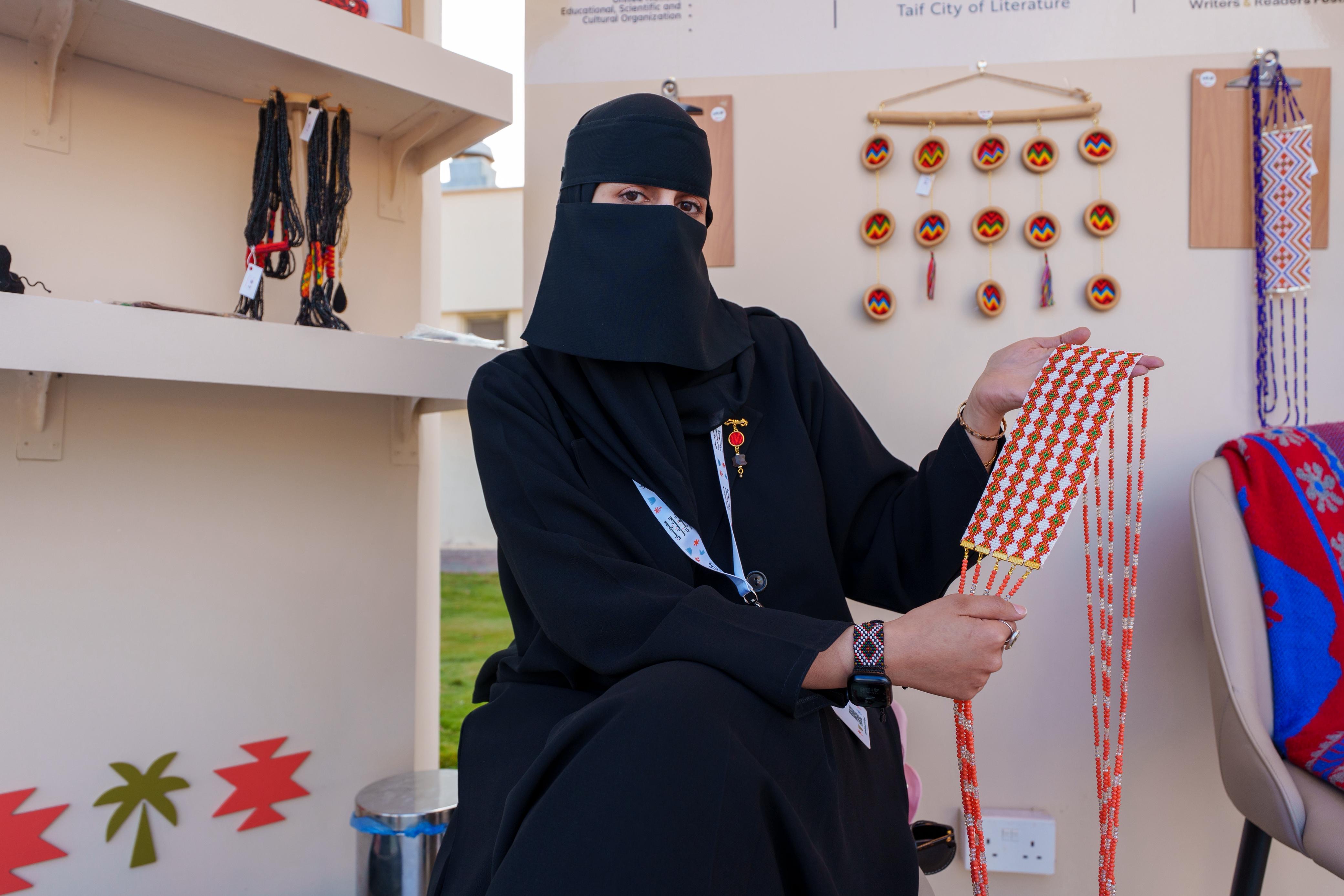 وأكدت أن حضور الحرف اليدوية ضمن مهرجان الكتّاب والقرّاء يضيف بُعدًا مواكِبًا لهوية الطائف، لافتةً إلى أن مشاركتها تضمنت شرح مراحل صناعة القطع وكيف تتطور الفكرة من بدايتها حتى إنجازها، بما يقرّب الحِرفة من الزوار ويعزّز التواصل بين الأجيال.