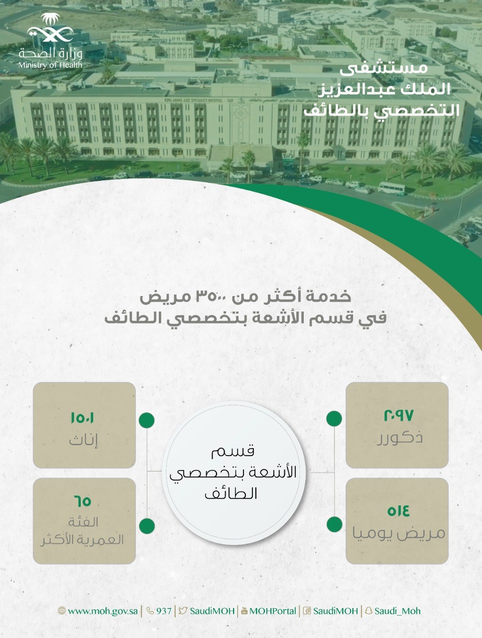 خدمة أكثر من 3500 مريض في قسم الأشعة بتخصصي الطائف في أسبوع