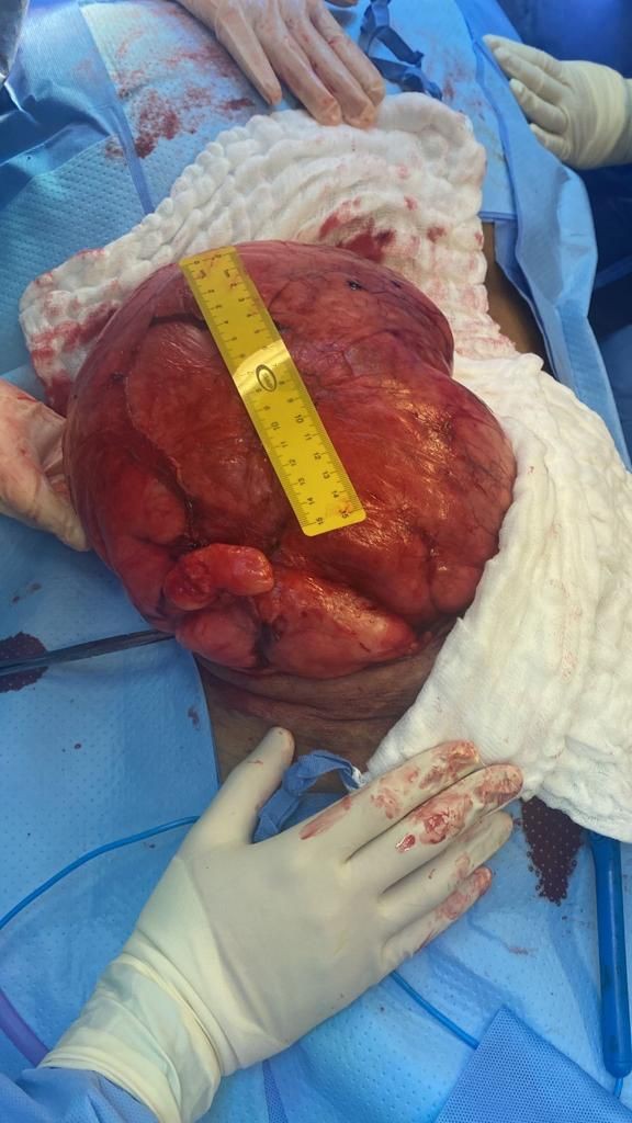 وأوضح الفريق الطبي الجراحي  بالمستشفى أن حجم  الورم يبلغ ٤٠ سم في ٣٠ سم حيث يقارب وزنه ثلاثة كيلو، وأشاروا أيضاً أن المريض كان يعاني من هذا التورم الضخم من فترة طويلة و لا يستطيع ممارسة  نشاطه اليومي و النوم على ظهره لمدة ثلاث سنوات، مبينين أن المريض الآن وبعد إجراء العملية الجراحية له و إزالة الورم بدأ يتماثل للشفاء وبصحة جيدة، وسوف يحتاج المريض لإستكمال باقي العلاجات الطبية المقررة له بعد العملية للإستشفاء
