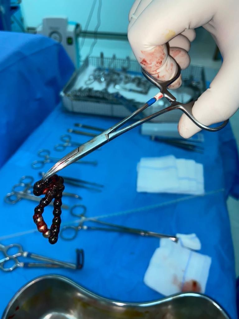وعلى الفور تم إدخال الطفل لغرفة العمليات واستخراج الجسم الغريب، كما تضرر جدار الأمعاء، حيث تم استئصال الأجزاء المتضررة في عملية أستغرقت ساعتين ونصف تكللت بالنجاح ولله الحمد والطفل في حالة مستقرة بفضل الله، في قسم التنويم العادي وحالته في تحسن.