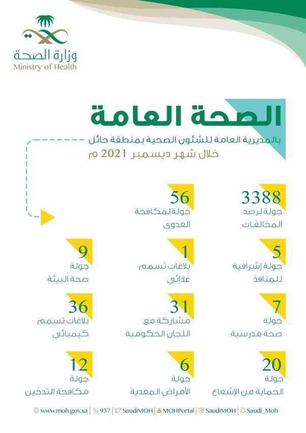 نفذت المديرية العامة للشؤون الصحية بمنطقة حائل، ممثلةً في إدارة الصحة العامة خلال شهر ديسمبر من هذا العام 2021م ، أكثر من 3000 جولة لرصد السلوك والمخالفات.