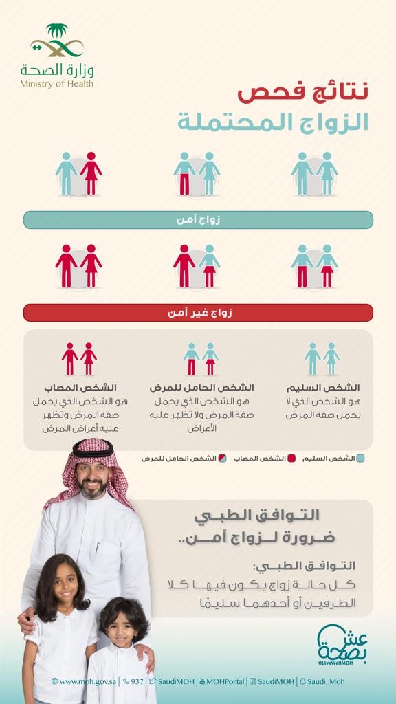 نظمت إدارة التوعية الصحية بصحة جدة فعالية الزواج الجمعي الذي يهدف إلى التعرف على نتائج فحص الزواج المحتملة (زواج آمن - زواج غير آمن) حيث توضح أن الشخص السليم هو الشخص الذي لايحمل صفة المرض بينما الشخص الحامل للمرض هو الشخص الذي يحمل صفة المرض ولا تظهر عليه الأعراض أما الشخص المصاب فهو الشخص الذي يحمل صفة المرض وتظهر عليه أعراض المرض وبذلك فإن التوافق الطبي ضرورة لزواج آمن لكل حالة زواج يكون فيها كِلا الطرفين أو أحدهما سليم ، كما يشمل الفحص قبل الزواج ثلاث أنواع من الأمراض والخدمات الصحيه وهيَ : الإلتهاب الكبدي، الإلتهاب الكبدي ، نقص المناعة المكتسبة ، واللقاحات هي : لقاح الكبد ب ، لقاح الحصبة ، الحصبة المانية والنكاف.