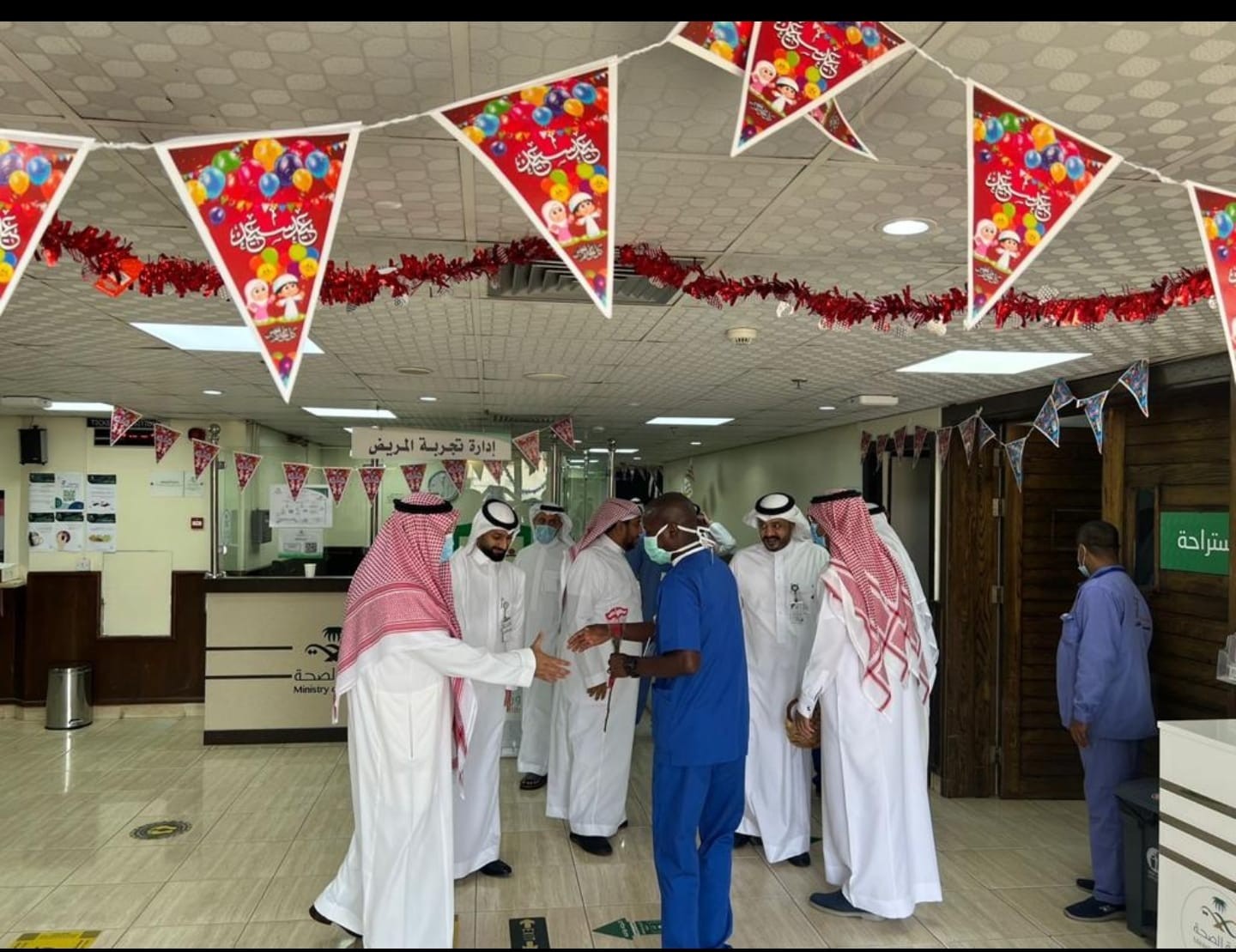 إحتفى مجمع إرادة والصحة النفسية (بقسميه لخدمات إرادة والنفسية) بجدة ليومي الإثنين والثلاثاء ٢ و٣ من شهر مايو 2022م بمناسبة عيد الفطر المبارك بالمرضى المنومين الذين يتلقون الخدمة العلاجية أثناء إجازة عيد الفطر المبارك من خلال جولة المعايدة التي قامت بها الإدارة العليا ومدراء الإدارات والأقسام الفنية والإدارية والمكلفين للقيام بأدوراهم الصحية والمهنية لتقديم الخدمة العلاجية المناسبة والمعايدة بتوزيع الهدايا والورود وإجراء المسابقات الثقافية والترفيهية والإستماع لهم للقيام بتلبية إحتياجاتهم العلاجية وفق تطلعات إدارة المجمع التي تحرص دائماً على تحقيق أعلى مستويات الرضى للمرضى المنومين والمراجعين وأسرهم ، حيث ستكون الزيارة متاحة للأسر طيلة أيام العيد الثلاثة للفترة الصباحية من العاشرة صباحاً وحتى الثانية بعد الظهر.