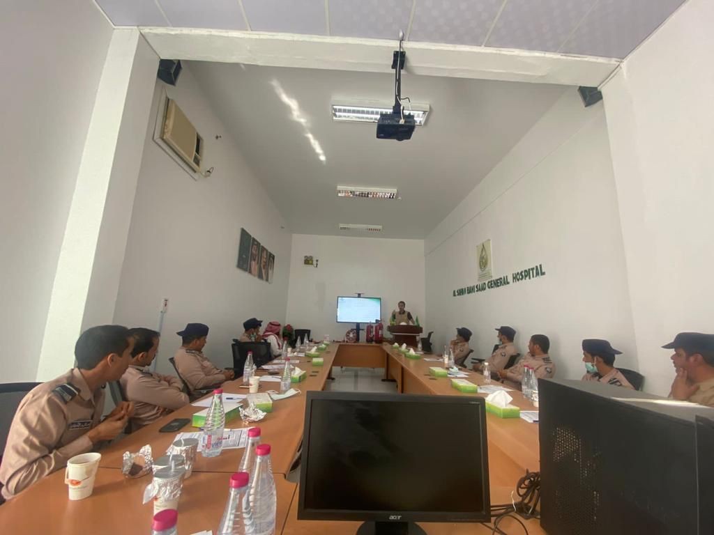 نفذ مستشفى السحن بني سعد العام ممثلاً في قسم الامن الصحي اليوم برنامج تدريبي لجميع افراد الحراسات الأمنية وشمل البرنامج التدريبي الهيكل التنظيمي بالقسم ومهام حارس الأمن وأخلاقيات المهنه ( حفظ خصوصية المرضى - مهارات التعامل مع المراجعين ، بالإضافة إلى توزيع بطاقات أكواد الطوارئ وشرحها وشرح طرق التعامل معها .