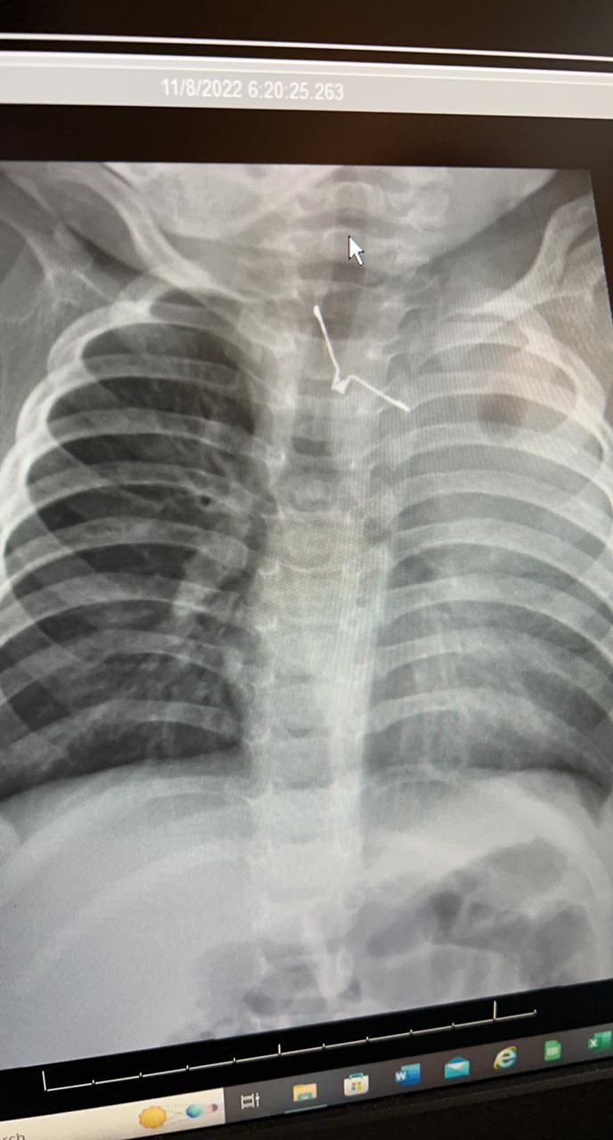 وأوضحت أن الفريق الطبي المشرف على الحالة قام على الفور بعمل التحاليل والإشاعات اللازمة، وتم إدخال الطفلة لغرفة العمليات بشكل عاجل؛ وذلك لاكتشاف جسم معدني حاد الأطراف بلعته الطفلة، وبقي عالقاً في المرئ، مما يسبب لها مضاعفات صحية خطيرة، لو تم تحريكه بأي طريقه خاطئة.